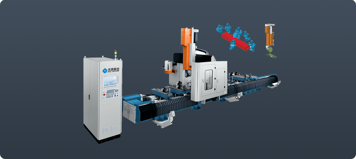 專(zhuān)為鋁幕墻型材設(shè)計(jì),可一次性完成三個(gè)面上孔、槽的鉆銑加工,并能進(jìn)行大截面型材的任意角度鋸切,功能高度集成。